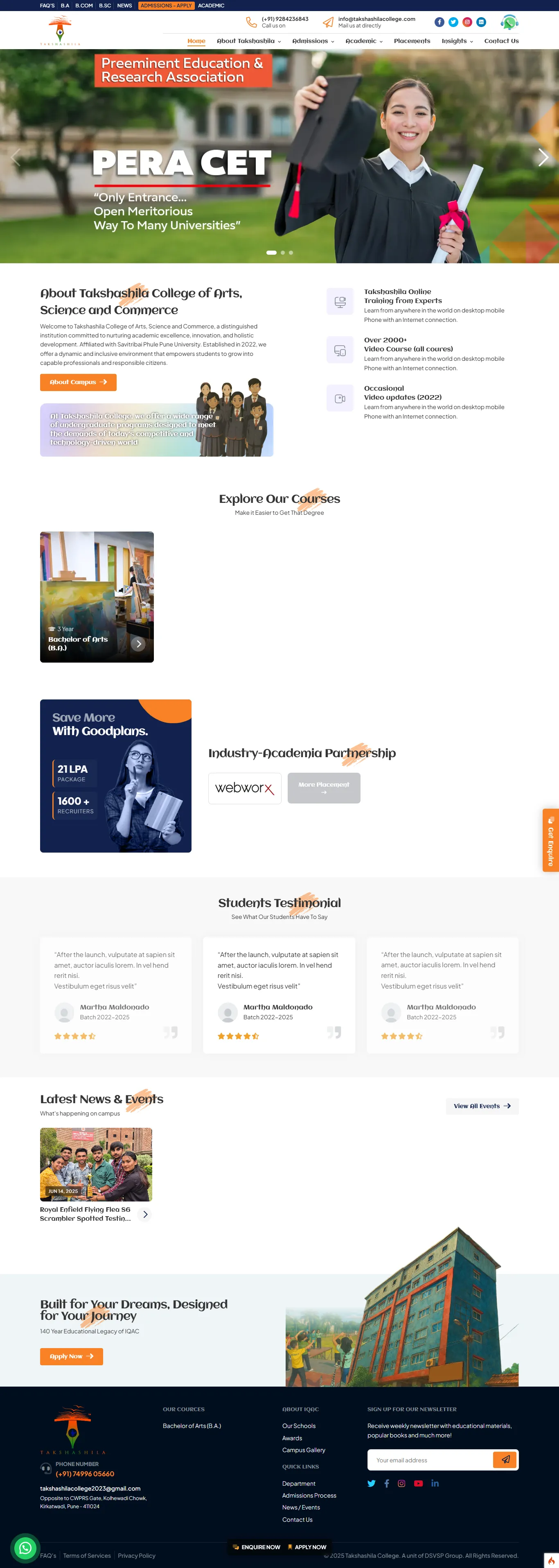 Takshashila College - Dynamic Whole Website